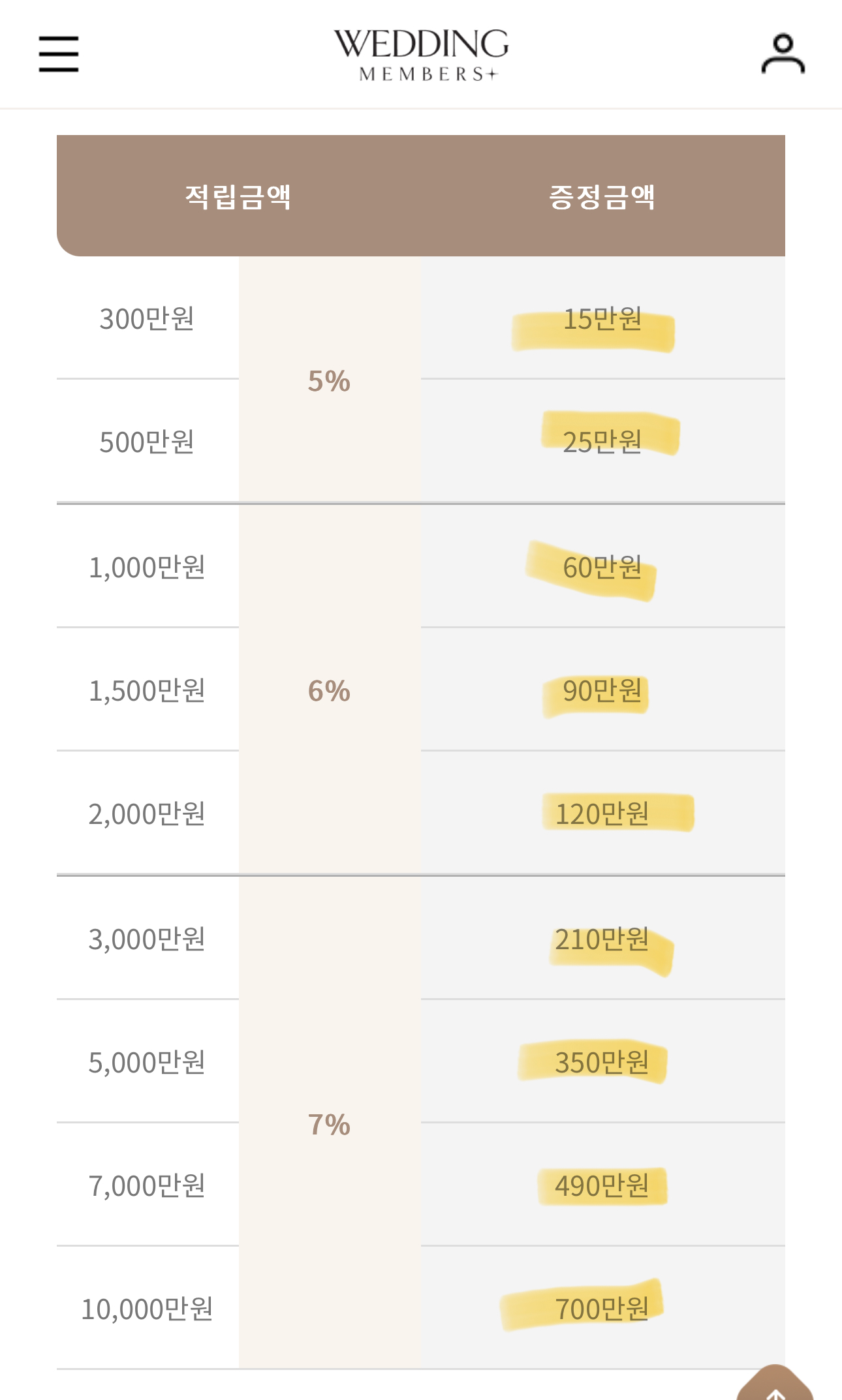 퍼센트 단위가 다른 백화점 웨딩마일리지와 비슷했습니다!